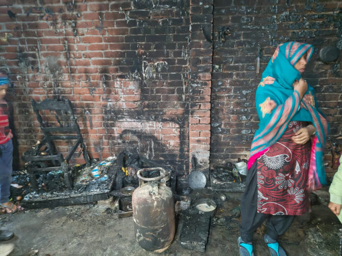 बुधवार की सुबह क्षेत्र के गांव कुराली निवासी परवीन पत्नी स्वर्गीय महबूब घर पर अकेली थी।परवीन के बच्चे गांव की ही मस्जिद के मदरसे में पढ़ने के लिए गए हुए थे। परवीन ने भीषण ठंड के चलते घर में रक्खे गैस सिलेंडर पर चाय बनाने के लिए जैसे ही रख्खी तो सिलेंडर में गैस लीक के चलते आग लग गई।गैस सिलेंडर में जैसे ही आग लगी तो वह घबरा गई और जैसे ही परवीन ने आग बुझाने का प्रयास किया जब तक घर में रक्खा हजारों रुपए का समान जलकर राख हो गया।घटना की जानकारी पर मोहल्ले में उस समय अफरा-तफरी मच गई, जब बच्चों के लिए चाय बनाते समय घरेलू गैस सिलेंडर में अचानक आग लग गई। आग इतनी तेजी से फैली कि घर में रखा सारा कीमती घरेलू सामान जलकर राख हो गया।