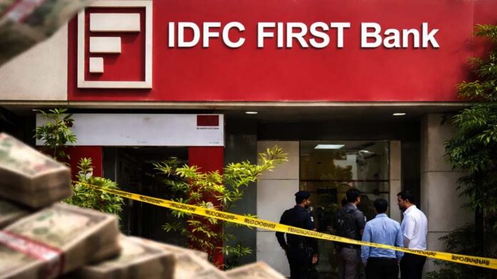 नई दिल्ली: निजी क्षेत्र के आईडीएफसी फर्स्ट बैंक की चंडीगढ़ शाखा में 590 करोड़ रुपये की बड़ी धोखाधड़ी का मामला सामने आया है। इस घटना ने बैंक की साख को झटका दिया है और शेयर बाजार में भारी गिरावट दर्ज की गई है। मामला हरियाणा सरकार से जुड़े खातों तक सीमित बताया जा रहा है, लेकिन इसके असर व्यापक दिख रहे हैं।