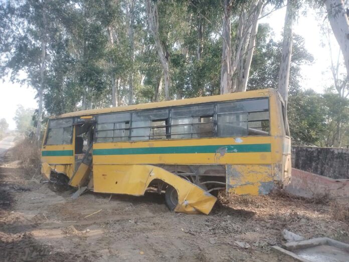 किठौर: सारंगपुर से बच्चे लेकर आसिफाबाद जा रही स्कूल बस सालौर नहरपुल के पास क्षतिग्रस्त होकर पलट गई। हादसे में 12 बच्चे चोटिल हो गए। इनमें एक को गंभीर चोट लगी है। सूचना पर पहुंची पुलिस ने चोटिलों को उपचार के भिजवाया।