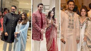 अभिषेक बच्चन और ऐश्वर्या राय भी शादी में पहुंचे। दोनों ने पैपराजी को पोज दिए और अभिषेक ने हाथ जोड़कर उनका धन्यवाद किया।